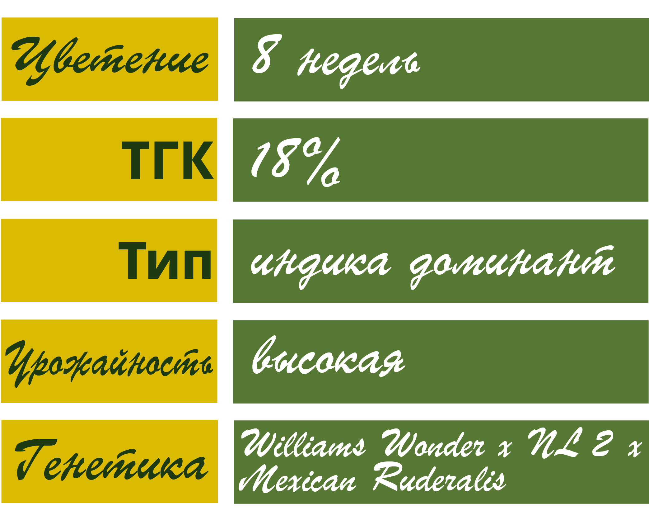 Тип: феминизированный автоцветущий гибрид.
