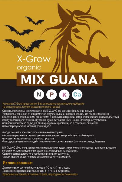 Основные вещества, содержащиеся в MIX GUANO это азот, фосфор, калий, кальций.