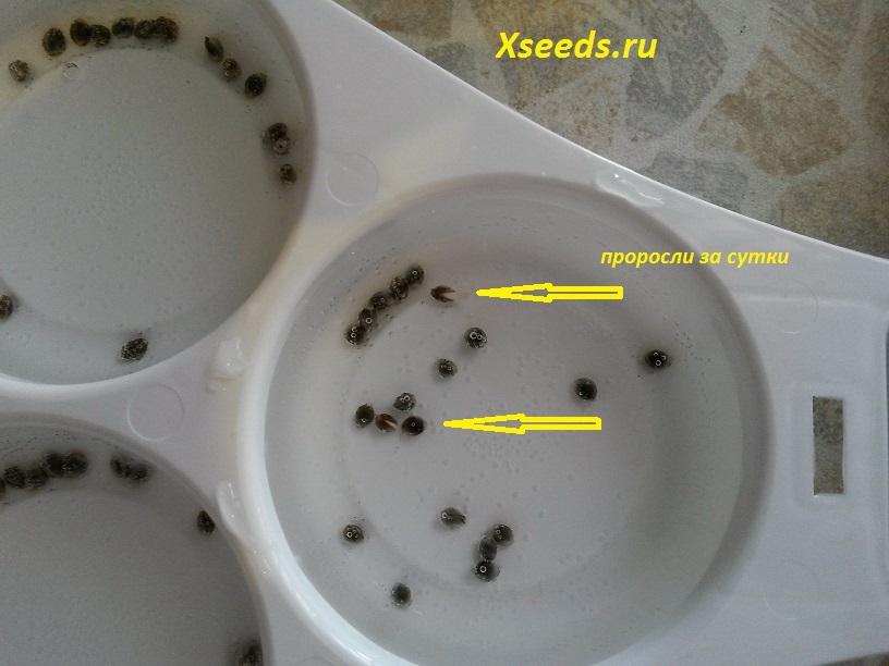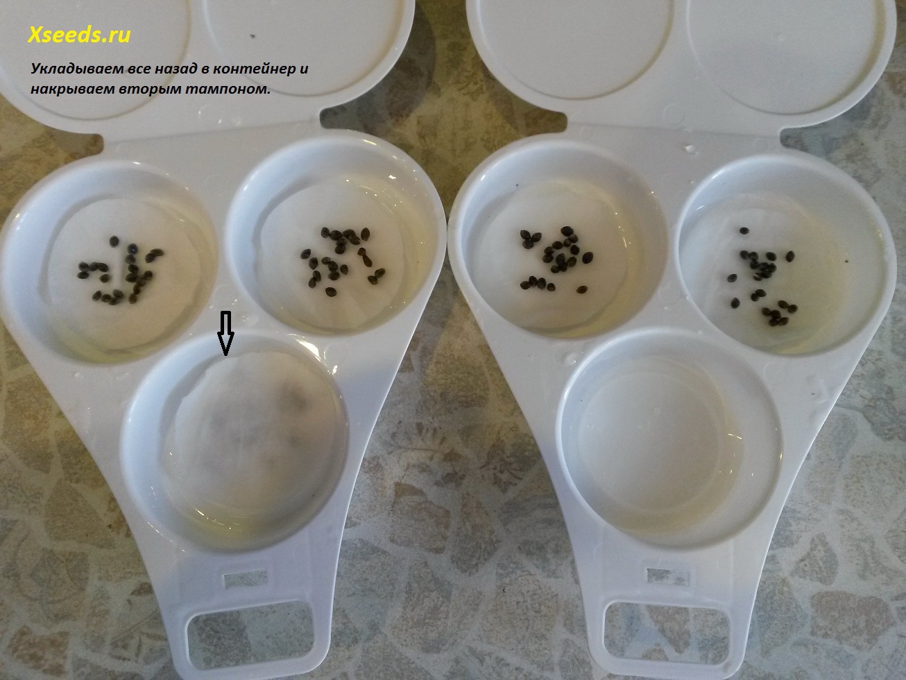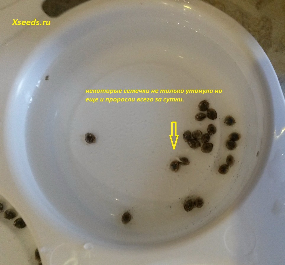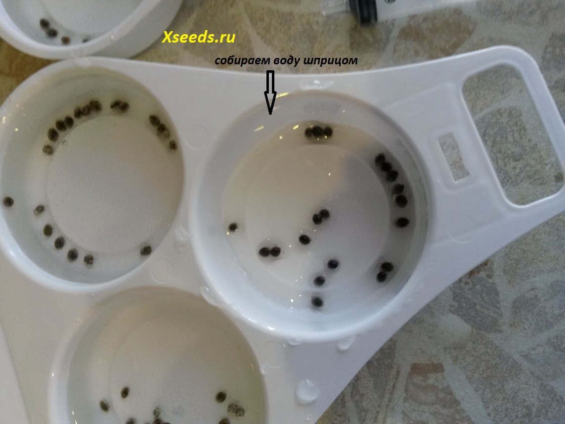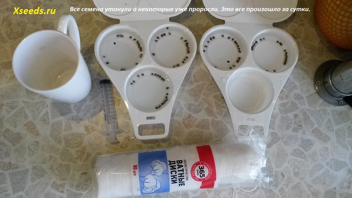 Туда же кладем семена и ожидаем пока они напитаются водой и утонут обычно это 1-2 дня.