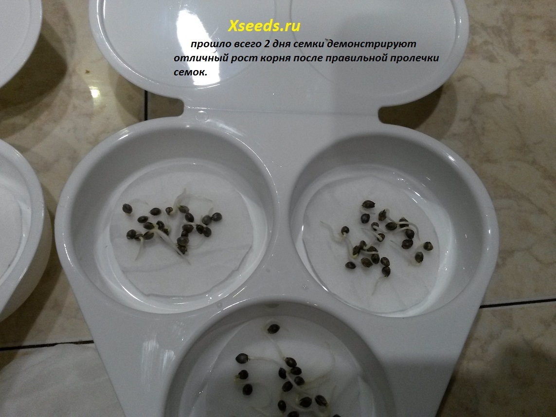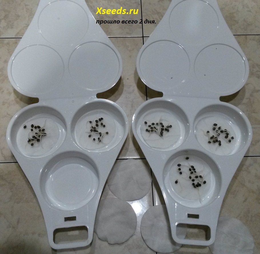 Сегодня всего 2 день проращивания результат выше моих ожиданий, все семки проросли и большинство имеют уже достаточно длинный корень для высадки.