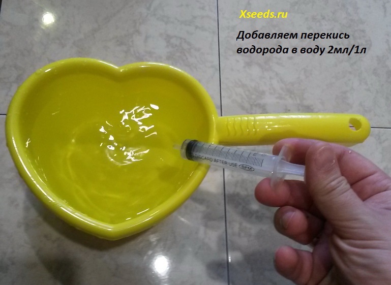 Разбавляем в воде перекись водорода из аптеки в количестве 2мл на 1 литр воды, для обезораживания воды от грибков которые в процессе могут тормозить рост корня особенно пока маленький.